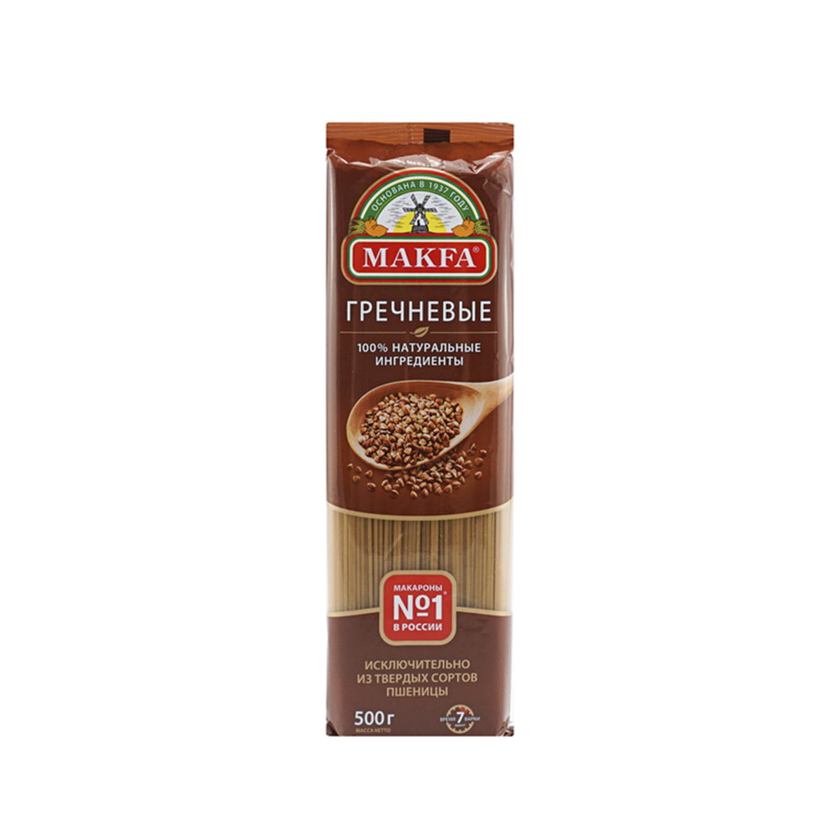 Спагетти сделаны из 2-х видов муки: пшеничной с отрубями и гречневой — и объединяют пользу обеих круп. Вермишель имеет светло-коричневый цвет, в готовом виде — светло-бежевый. Варится за 7 минут, не теряя упругой формы. Вкус гречки — деликатный, сбалансированный.