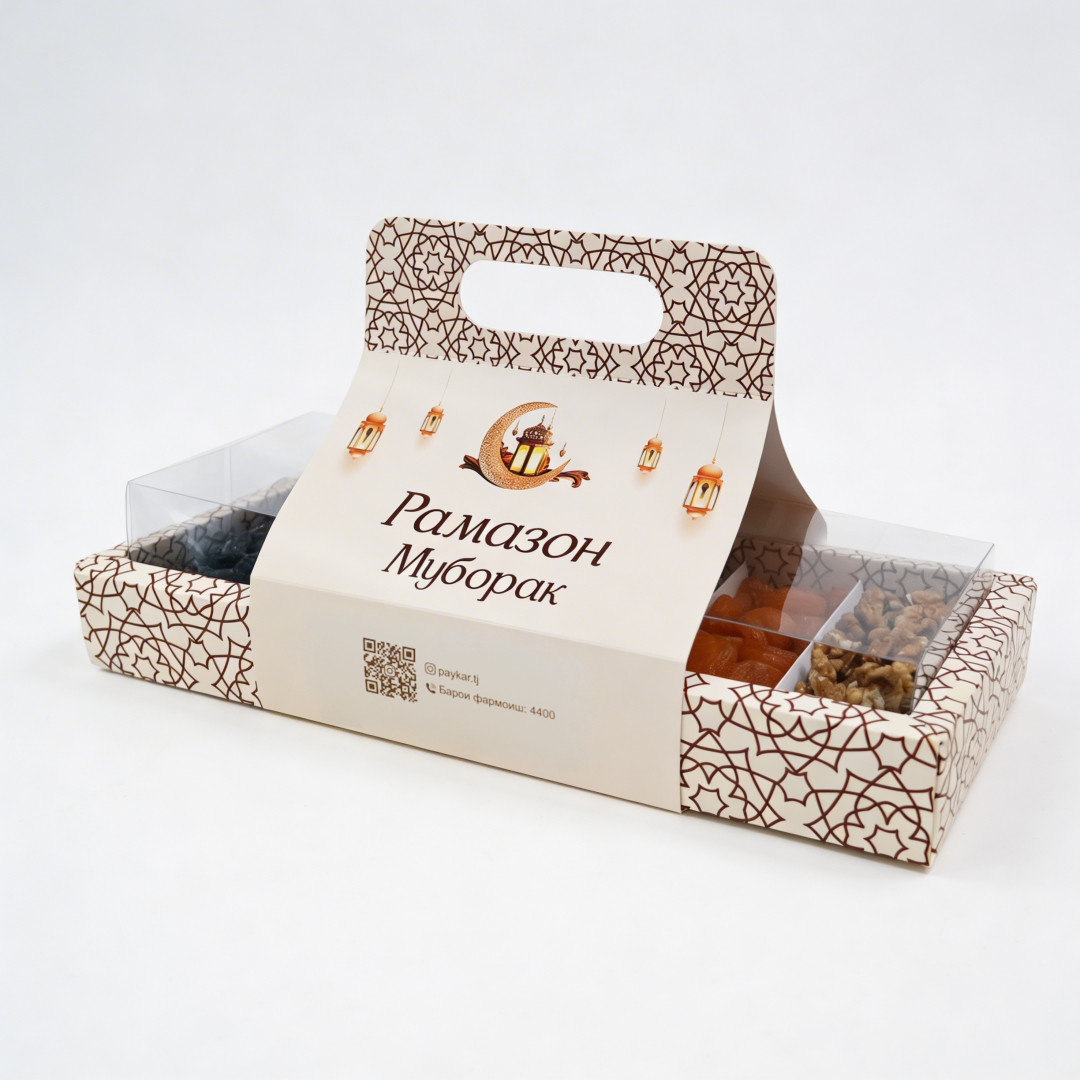 Подарочный набор из сухофруктов — идеальный выбор для месяца Рамадан. В составе — отборные сушёные фрукты с натуральной сладостью и насыщенным вкусом. Такой набор прекрасно подойдёт для ифтара, угощения гостей и в качестве тёплого, заботливого подарка близким.