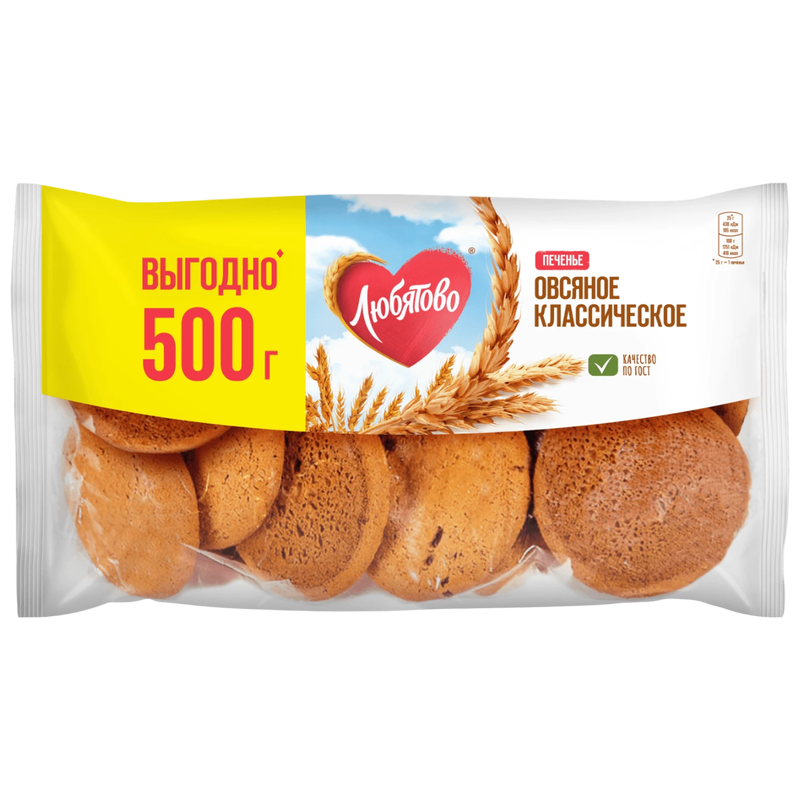 Любятово Овсяное классическое (500 г) — вкусное и сытное печенье, которое понравится и детям, и взрослым.