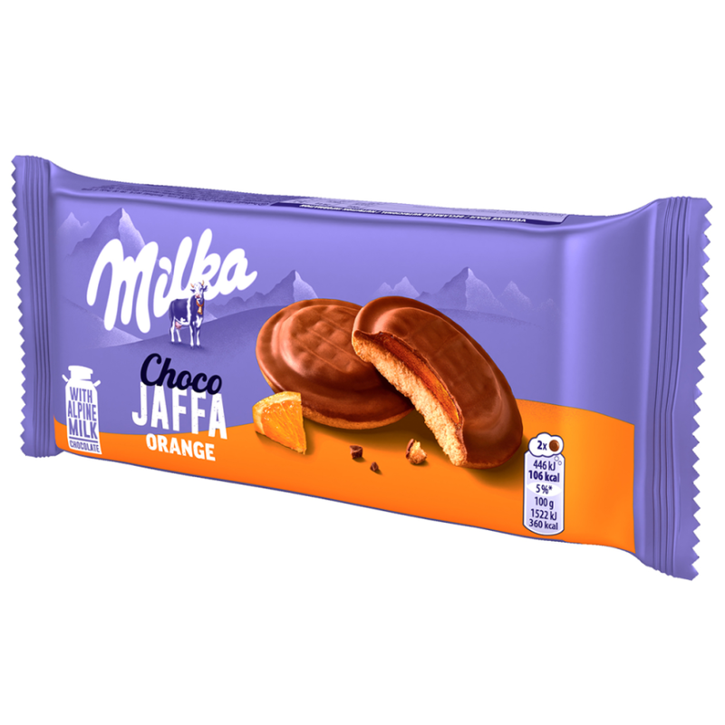 Milka Choco Jaffa — это лёгкое бисквитное печенье, покрытое молочным шоколадом Milka и дополненное ароматной апельсиновой прослойкой из нежного джема. Яркий цитрусовый вкус в сочетании с мягким тестом и шоколадным покрытием делает лакомство идеальным для чаепития, десертов и сладких перекусов.