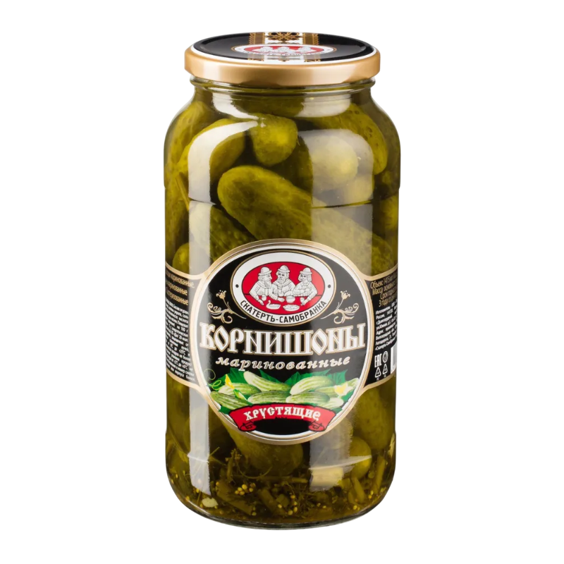 Хрустящие маринованные корнишоны премиального качества от бренда «Скатерть‑самобранка». Маленькие огурчики с плотной кожицей, слегка острые, с ярким пикантным вкусом. Отлично подходят для закусок, салатов, гарнира или самостоятельного употребления.