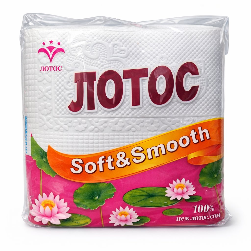 Бумажные салфетки «Лотос» — это практичный и удобный продукт для повседневного использования дома, в офисе, кафе и на мероприятиях. Салфетки имеют оптимальный размер, мягкую текстуру и хорошо впитывают влагу. Подходят для сервировки стола, приёма пищи и гигиенических целей.