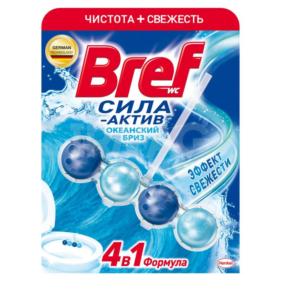 Ищете простой способ, как поддержать чистоту и свежесть в Вашем туалете? Уникальная формула 4-в-1 Bref Сила-Актив обеспечивает гигиеническую чистоту, защиту от известкового налета, обильную пену и свежий аромат. Просто закрепите блок под ободком унитаза рядом со струей воды и наслаждайтесь насыщенной свежестью и чистотой Вашего туалета с каждым смыванием! Bref Сила-Актив хватает до 250 смываний.