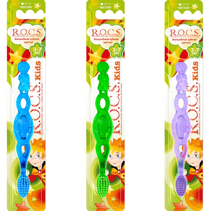 «РОКС» Kids (3–7 лет, мягкая) — щётка, которая делает чистку зубов безопасной и комфортной для ребёнка.