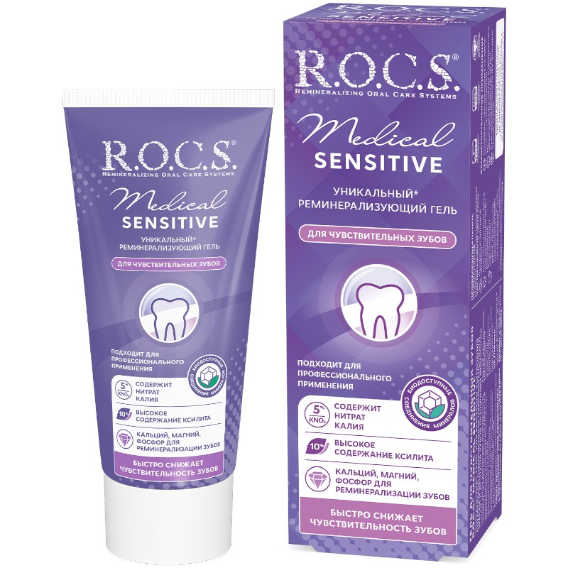 Гель R.O.C.S. Medical Sensitive создан специально для снижения чувствительности зубов и восстановления эмали. Минеральный комплекс с кальцием, фосфором и магнием способствует реминерализации, укрепляет структуру зуба и защищает дёсны. Мягкая формула без фтора и антисептиков подходит для ежедневного применения, не раздражает слизистую и обеспечивает длительный комфорт.