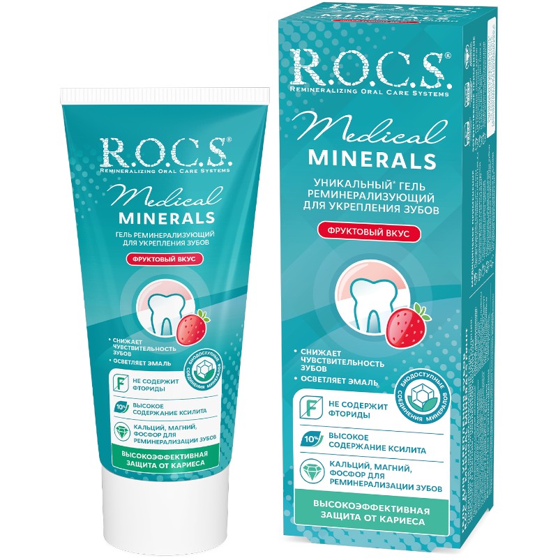«РОКС» Medical Minerals Fruit (45 мл) — восстановление, защита и укрепление зубной эмали с приятным фруктовым вкусом.