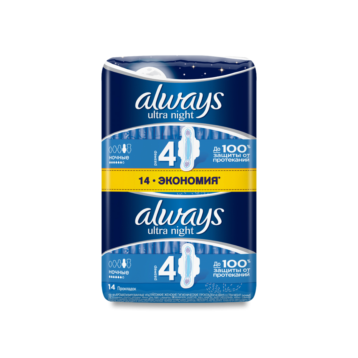 Прокладки женские ночные, 14 штГигиенические прокладки Always Ultra с системой Сразу Сухо мгновенно впитывают влагу и удерживают ее внутри, обеспечивая до 100% защиты и уверенности.