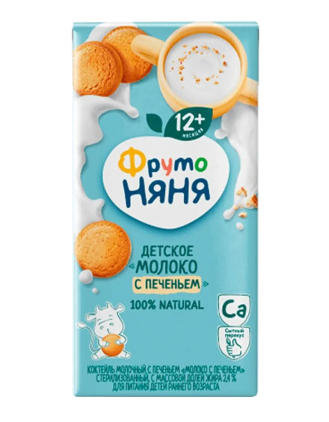 Дет/молоко Фруто Няня 200мл с печеньем 8+ 2,5%