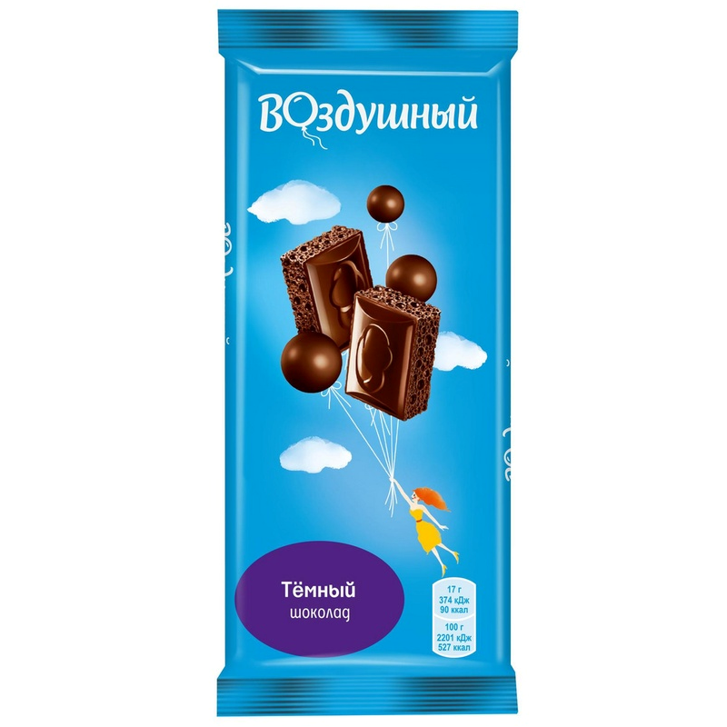 Воздушный Шоколад тёмный пористый (85 г) — это сочетание насыщенности тёмного шоколада и лёгкости воздушной текстуры, которое дарит настоящее удовольствие с каждым кусочком.