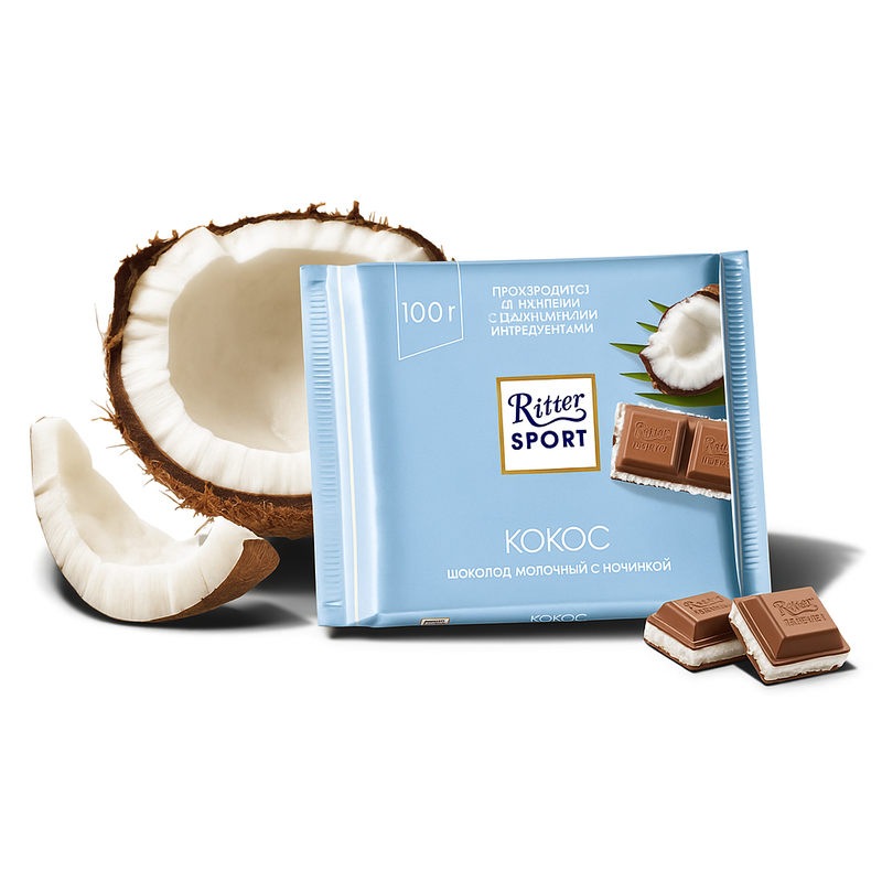 Погрузитесь во вкус лета с Ritter Sport Кокос — шоколад, который переносит на тропический остров с первого кусочка!