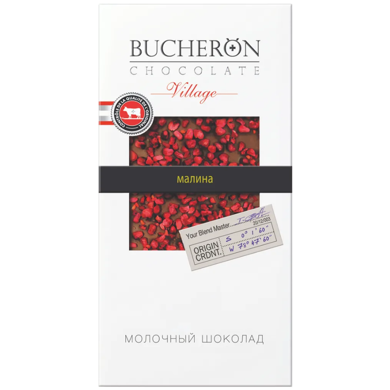 Молочный шоколад Bucheron с кусочками малины (72%) — это изысканное сочетание насыщенного шоколада и ароматной натуральной малины. Яркие ягодные кусочки добавляют шоколаду лёгкую кислинку и фруктовую свежесть, а высокий процент какао придаёт глубину и благородство вкусу. Плитка выполнена в стильной упаковке, подчеркивающей премиальный статус бренда.