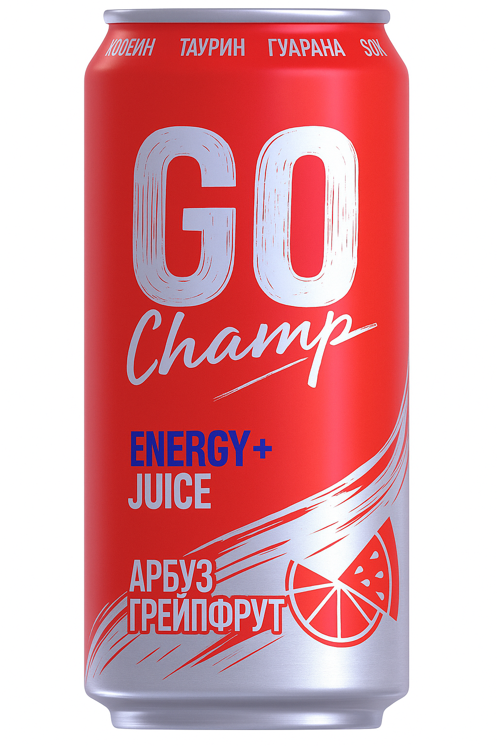 Go Champ Арбуз Грейпфрут (0,43 л) — вкусный и бодрящий энергетический напиток с ярким фруктово-цитрусовым вкусом.