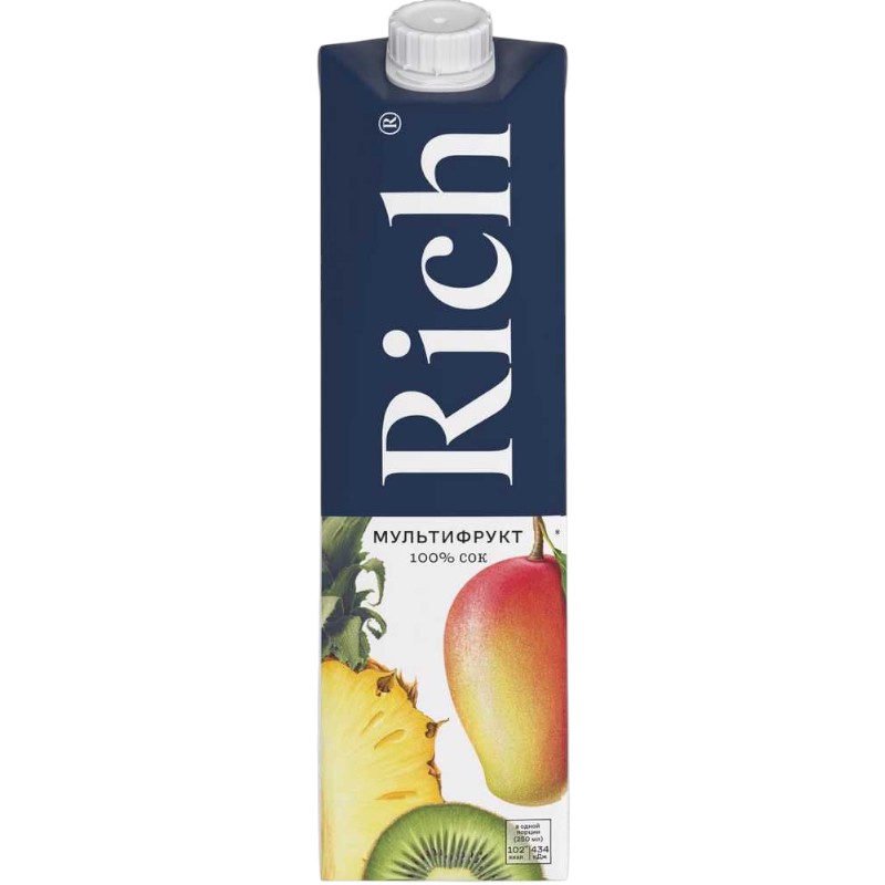 Сок Рич Мультифрут — разнообразие фруктовых вкусов и свежесть в каждом глотке.