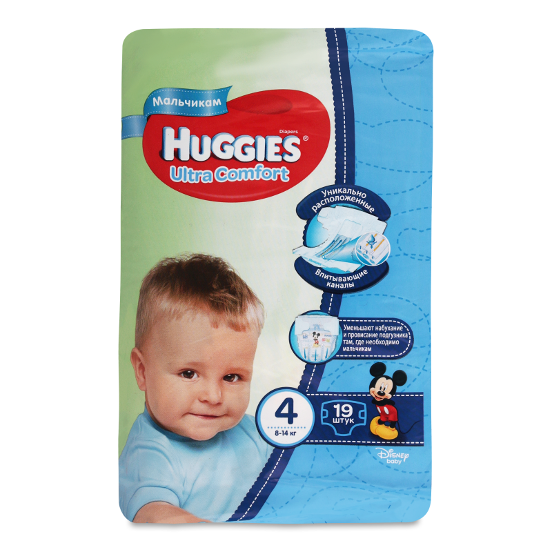 Подгузники HUGGIES Ultra Comfort №4-19шт дмал 8-14кг