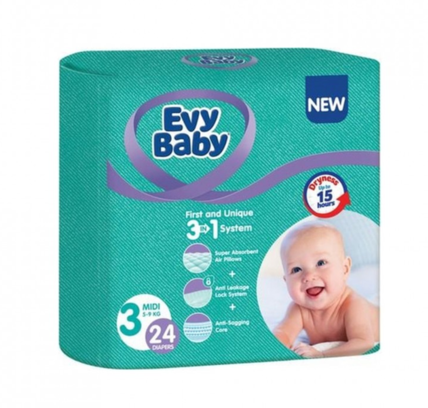 Подгузники Evy Baby 3-24шт 5-9кг