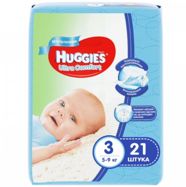 —Подгузники HUGGIES Ultra Comfort №3-21шт д/мал 5-9кг
