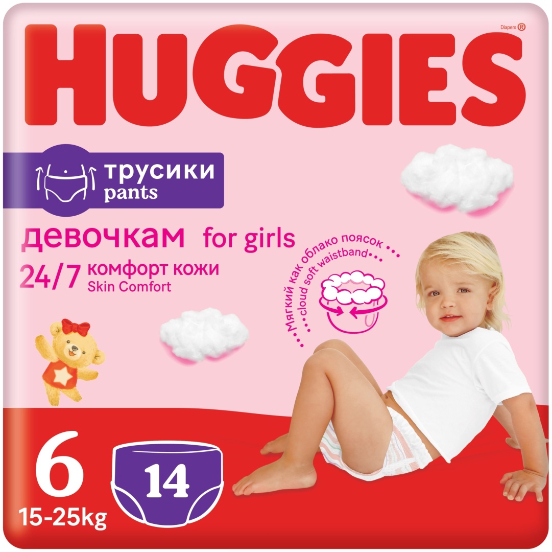 Подгузники-Трусики HUGGIES №6-14шт д/дев 15-25кг