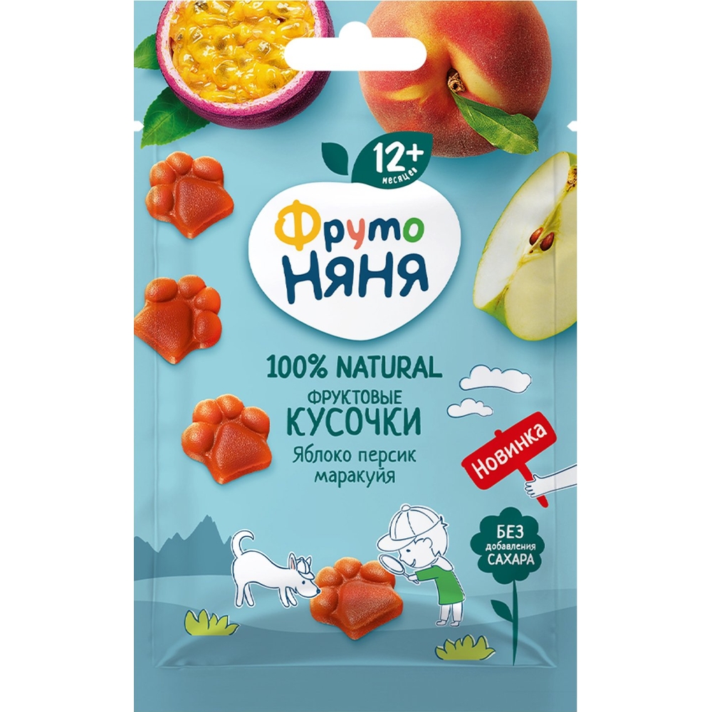 Встречайте новинку! Фруктовые кусочки ФрутоНяня с яблоком, персиком и маракуйей в забавной форме лапки. В составе только натуральные фрукты и нет ничего лишнего: ни добавленного сахара, ни ароматизаторов, ни красителей. Новое сочное сочетание вкусов разнообразит рацион вашего малыша. С фруктовыми кусочками ФрутоНяня можно баловать малыша без лишних забот!