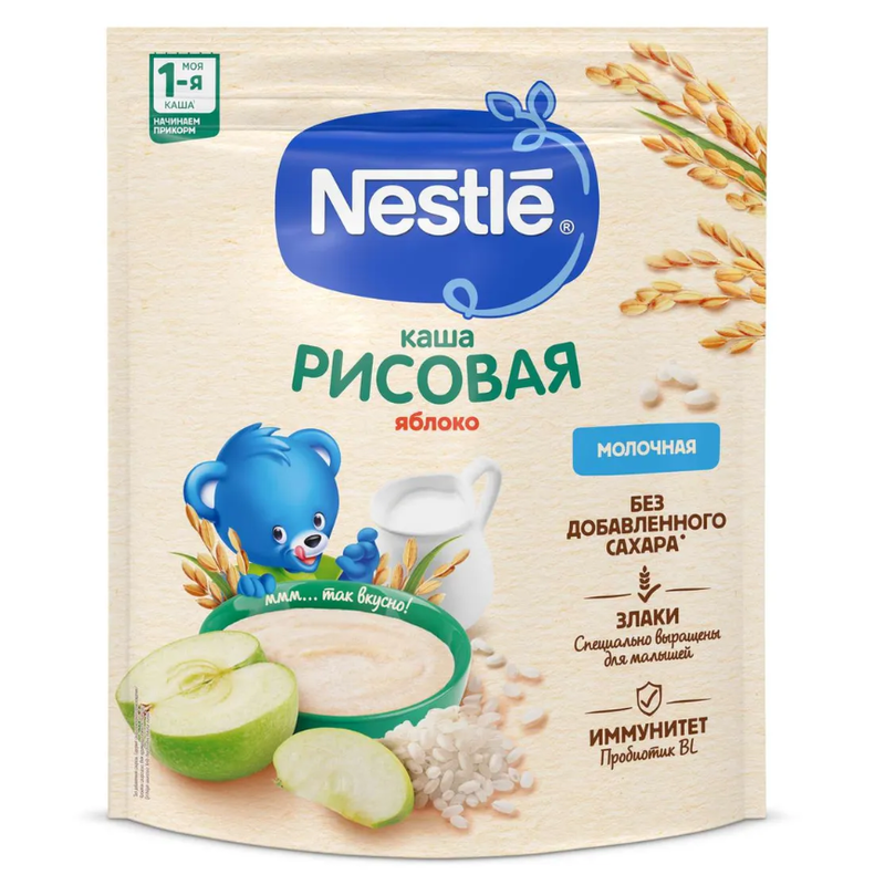 Nestlé рисовая каша с яблоком — вкусное и полезное питание для малышей после 6 месяцев.
