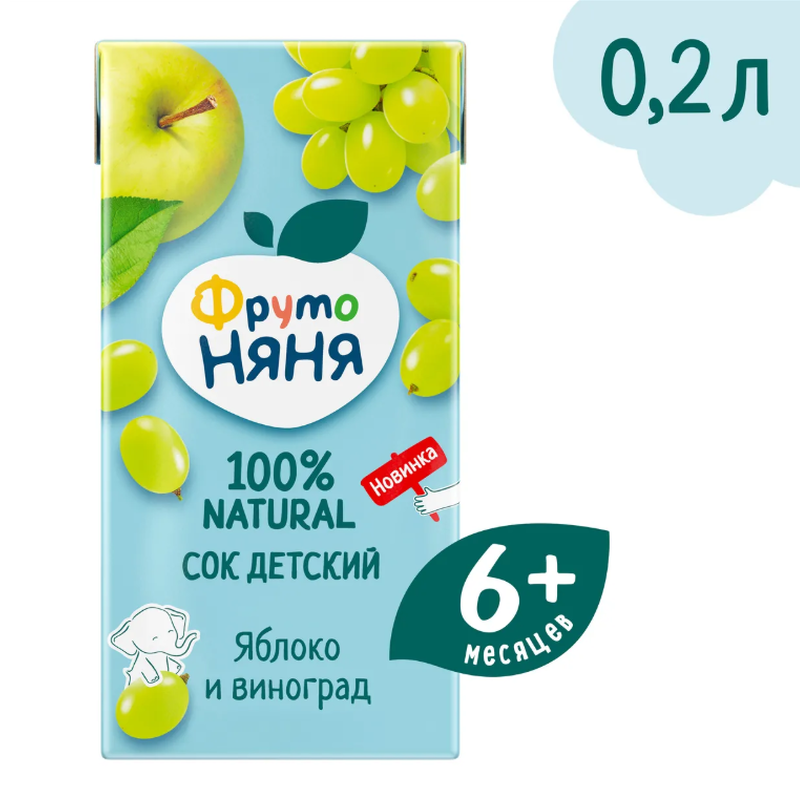 Сок из яблок и винограда «ФрутоНяня» – это уникальное сочетание вкуса сочного наливного яблока и ароматного винограда. В составе 100% натуральные фруктовые соки без добавления сахара. Сок «ФрутоНяня» станет отличным дополнением рациона детей от 6 месяцев. Формат упаковки 200 мл удобно брать с собой на прогулку или в гости, чтобы малыш всегда мог насладиться любимым соком и зарядиться энергией.