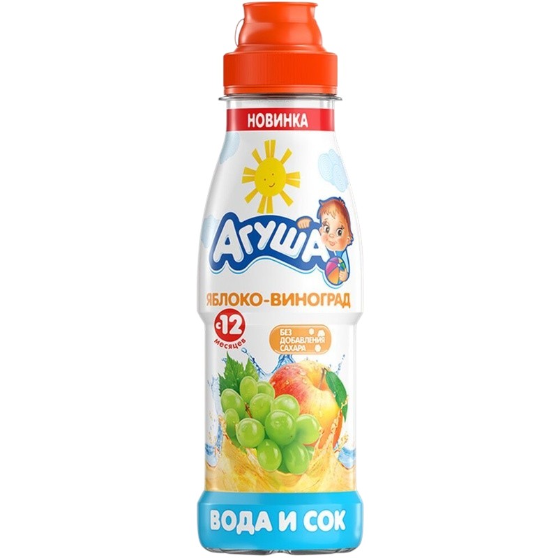 Напиток сокосодержащий Агуша из яблока и винограда. Создано для детей от 12 месяцев. Возьмите на прогулку вкусный и полезный напиток от «Агуша»!